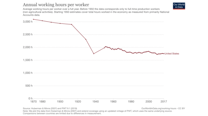 Wages up, hours down. Credit…Our World in Data