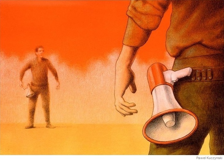 If you really care about trying to make the world a better place, then – if you’re really committed to carrying the torch of good – then upholding the rules of civil discourse is crucial. Again though, the problem is that too many people are acting in a way that puts a higher priority on mocking and humiliating the other side than on trying to find a common ground and make substantive progress with them. They’ve become less interested in destroying bad ideas than in destroying the people who hold them. More and more, their ways of seeing and interacting with the world – and each other – have become dominated by signaling and tribalism. And the result is that the classic “kitchen table discussions” – the ones where close friends or family members are just bouncing ideas off of each other in a freewheeling kind of way, not taking anyone’s points too personally or getting too emotionally worked up, but just comparing different ideas, trying them on for size, and seeing where they lead – are being supplanted by something more petty-minded, and more damaging. Instead of constructively exchanging ideas around the kitchen table – sometimes disagreeing but still hearing each other out and trying to understand each other – the kinds of conversations dominating our discourse today are more like two people standing on top of soapboxes on opposite sides of the street, raving about how wrong the other one is, and never actually communicating with each other directly at all. Instead of one two-way conversation, we’ve got two one-way conversations. People are more interested in grandstanding and pandering to their own side than trying to engage with the other side; and even when they do debate with the other side, this instinctive inclination toward grandstanding and pandering keeps the two sides from ever being able to meet each other on equal footing. They tend to just stick with the same standard talking points that they always use when talking to their own side, and as a result they simply end up talking past one another. As Tim Minchin puts it: