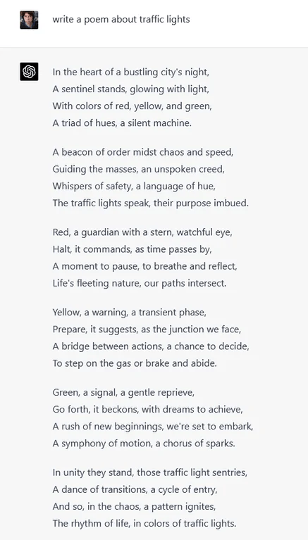 If you haven’t been paying much attention to how AI has been advancing these past few years – or even if you have been, for that matter – this is absolutely stunning. Nobody programmed the AI to give this response. Nobody explicitly taught it how to string together a grammatically correct sentence, or how to contextualize the themes of a story, or what a story even is (much less what A Tale of Two Cities is specifically). Its creators simply gave it a bunch of sample text from the internet (along with some corrective feedback as it interpreted that training data), and it figured out the rest on its own. It independently worked out which concepts were most relevant to the prompt, how to tie those concepts together coherently, and how to present them in a clear way – something that would be difficult even for many humans to do.